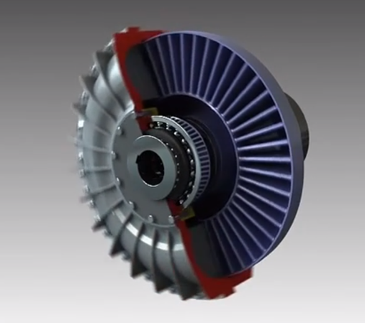 Hydraulic couplers are non-rigid couplers with liquid as the working medium. The GEMI hydraulic coupling (K series) is a fixed liquid-filled type of coupler that consists of three main parts: the pump wheel, the turbine, and the housing pump wheel and turbine (see figure) form a closed working chamber that can circulate liquid. The pump wheel is installed on the input shaft and the turbine is installed on the output shaft. The two wheels are semi-circular rings with multiple blades arranged along the radial axis. The blades do not contact each other. There is a gap of 3 mm to 4 mm between the blades which form a circular working wheel. The driving wheel is called the pump wheel, the driven wheel is called the turbine, and both the pump wheel and turbine are called working wheels. After the pump wheel and turbine are assembled, an annular cavity is formed, which is filled with working oil.